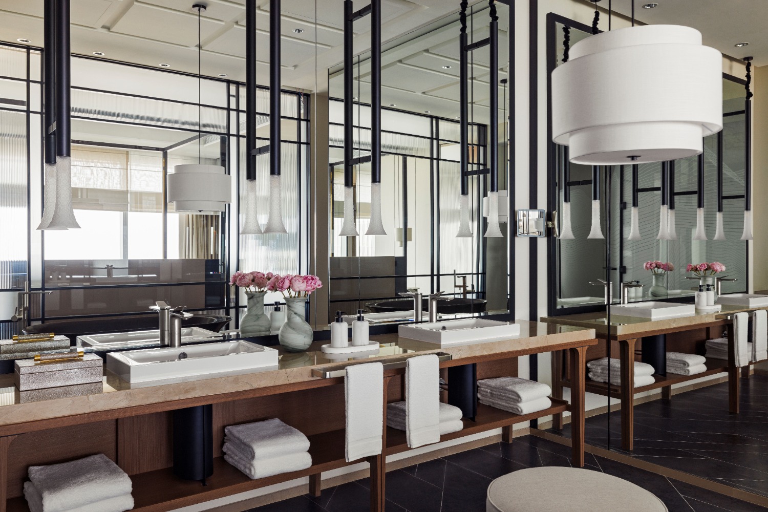 The lighting design throughout the hotel combines modern and traditional elements, resulting in fixtures that are refined, expressive, and forward-looking. Designers introduced a variety of avant-garde geometric forms, creating luminaires with dynamic, flowing silhouettes as well as stable, architectural geometries.