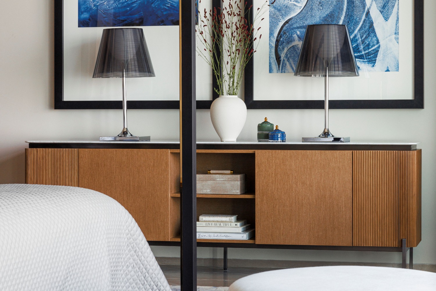 In the lobby, luminaires combine transparent glass with metal frameworks. The glass components refract warm light from within, while the metal structures convey a minimalist, contemporary character. In guest rooms and dining areas, warmer material palettes are introduced, such as wooden lighting elements combined with refined metal detailing, creating a calm, welcoming, and comfortable environment for guests.